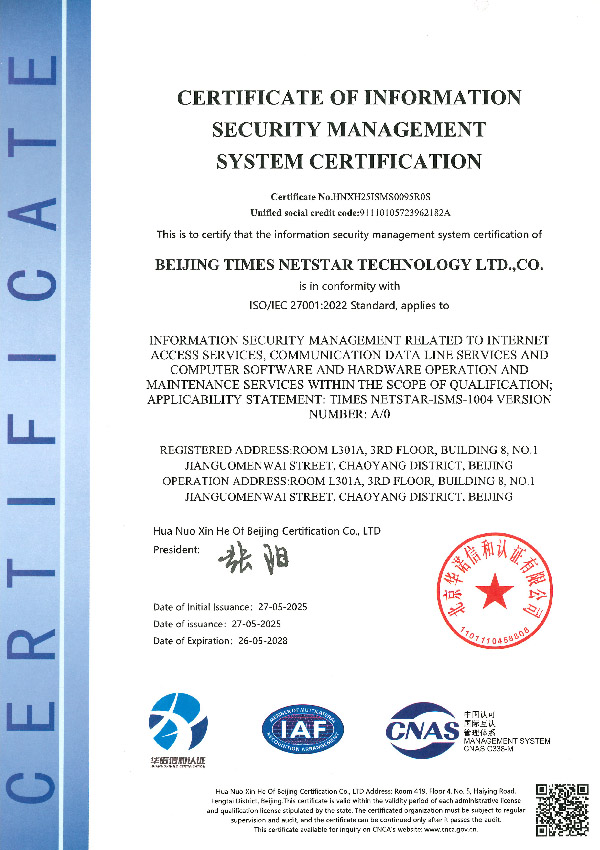 Beijing Times NetStar Technology Co., Ltd. (TNET) was established in August 2000. It is a value-added Internet Service Provider, invested by China Unicom and China World Trade Center. TNET aims at planning, constructing and operating "Smart Park". As a national high-tech enterprise that upholds ISO9000 Quality Management System Certification, ISO20000 Service Management System Certification, and ISO27001 Information Security Management System Certification,TNET provides 7*24 on-site network and IT Butler service for near 1000 international and domestic enterprises, China World Mall, China World Hotel and other Shangri-La Hotels. The business scope covers broadband access, communication business agency, IT outsourcing, system integration, software development and other comprehensive information needs based on "Smart Office". With the help of "TNET Cloud" platform and big data management platform, we provide customers with professional and customizable IaaS, PaaS and SaaS services, as well as cloud video conference, cloud monitoring, cloud patrol inspection, cloud security and other comprehensive application support and management services. TNET has committed to becoming the leading and reliable comprehensive network information service provider. Adhering high level industry service standard, the one of a kind intellectual “Network Expert" & turnkey “IT Butler" service has been recognized as an important part of CWTC & Kerry business services and indispensable functions of any intellectual business circle. Entering the digital era, leveraging our robust digital and intelligent capabilities, TNET is committed to working with you to contribute to the development of smart buildings and deliver high-quality, reliable services to clients.TNET is your trusted NetworkExpert and IT Butler.