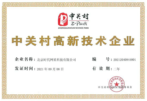 時代網(wǎng)星通過“中關(guān)村高新技術(shù)企業(yè)”認(rèn)定