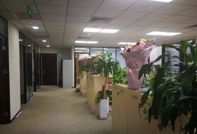 合作伙伴送來花籃表示祝賀 圖片 租區(qū)內(nèi)特地擺放了鮮花,表達(dá)員工們的喜悅心情