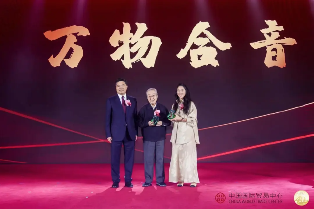回望奮斗路,國(guó)貿(mào)中心的輝煌成就離不開富有遠(yuǎn)見的奠基人和創(chuàng)業(yè)者。其中101歲高壽的馬來西亞華人郭鶴年先生是國(guó)貿(mào)中心的奠基者之一,他雖然身在香港,但是心卻在國(guó)貿(mào),他以最傳統(tǒng)的信函方式表達(dá)了對(duì)國(guó)貿(mào)中心的深厚感情。魏玉明先生是國(guó)貿(mào)中心第二任董事長(zhǎng),2024年正是魏老百歲華誕,他親臨大會(huì),并寄語(yǔ)國(guó)貿(mào):繼承艱苦奮斗的精神,開創(chuàng)宏偉事業(yè)的未來。大會(huì)現(xiàn)場(chǎng),盛秋平董事長(zhǎng)代表國(guó)貿(mào)中心向郭鶴年先生和魏玉明先生兩位德高望重的百歲老人致敬獻(xiàn)禮。禮物是名為“萬物合音”的琉璃作品,既代表兩位老人的高雅品格,又象征著合資雙方精誠(chéng)合作成就了 “銳意進(jìn)取,鑄就非凡”的國(guó)貿(mào)精神;葫蘆的造型設(shè)計(jì)更是對(duì)兩位老人福祿雙全、健康長(zhǎng)壽的誠(chéng)摯祝福。