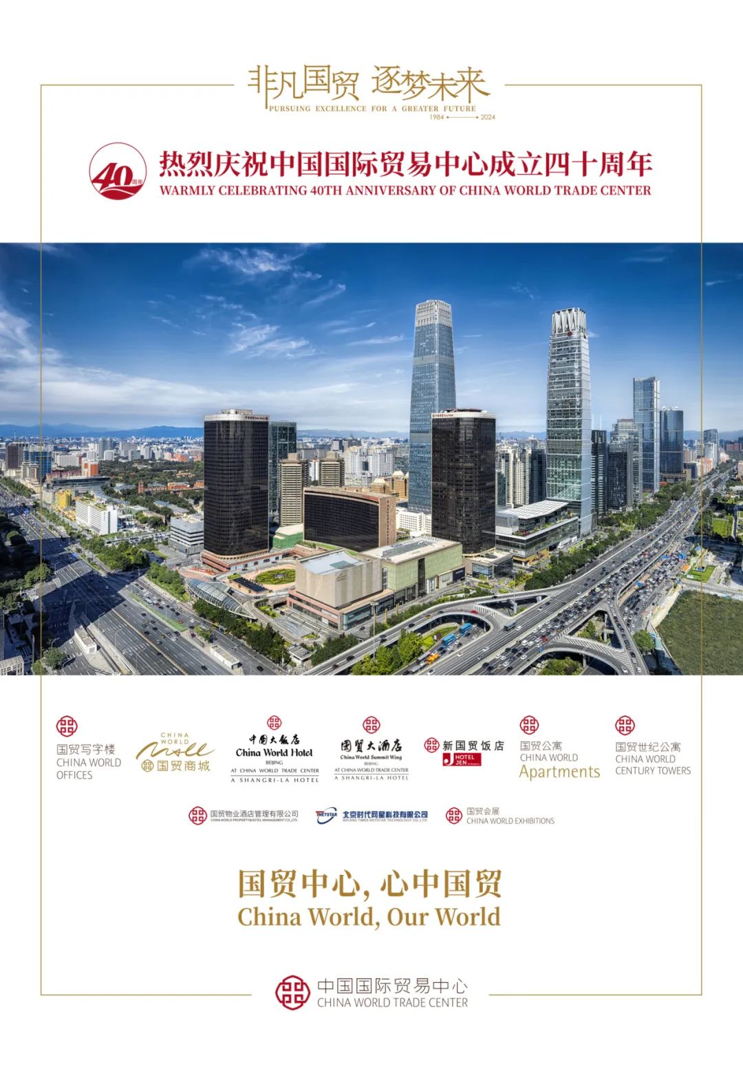 在國(guó)貿(mào)中心成立40周年之際,國(guó)貿(mào)中心收到來自全球社會(huì)各界友人的祝福視頻,正是由于大家的共同努力締造了今日國(guó)貿(mào)中心的輝煌。