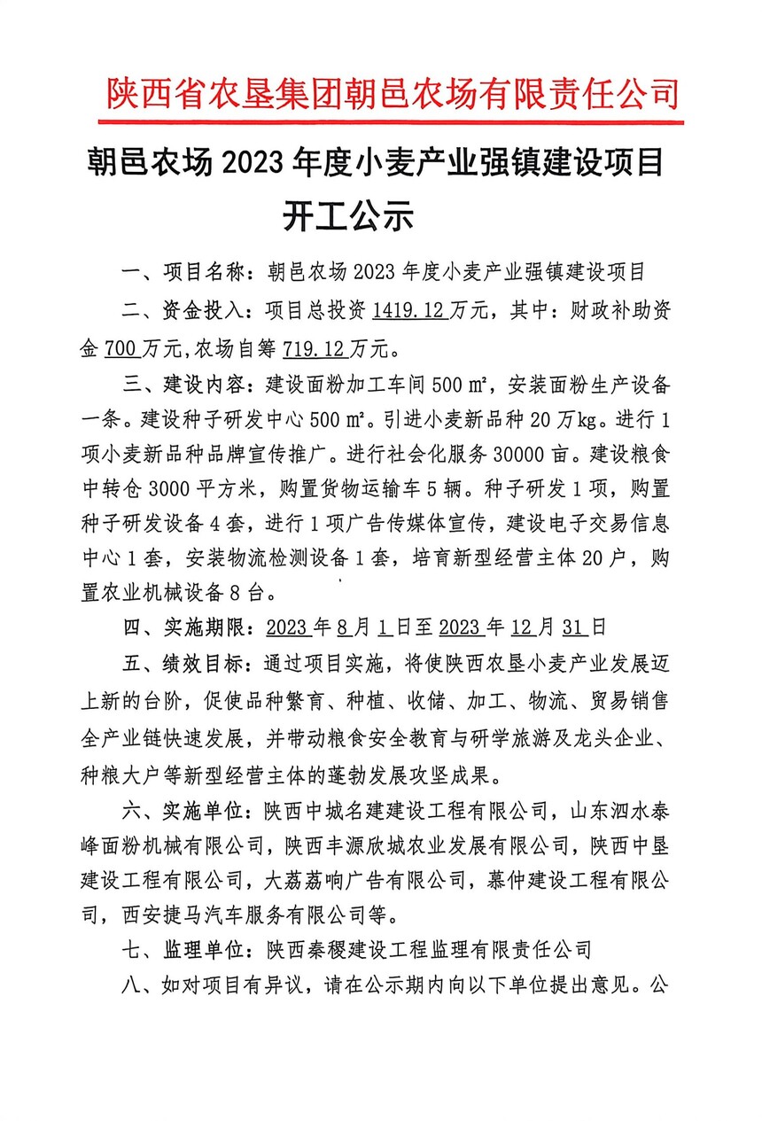 朝邑農(nóng)場(chǎng)2023年度小麥產(chǎn)業(yè)強(qiáng)鎮(zhèn)建設(shè)項(xiàng)目開(kāi)工公示时间:2023-08-01 【原创】 阅读