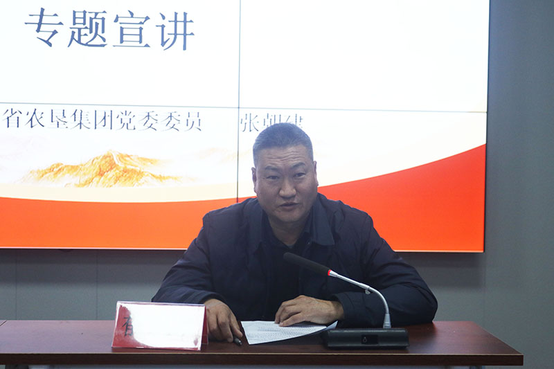 省農(nóng)墾集團(tuán)黨委委員張朝建在朝邑農(nóng)場宣講黨的二十屆四中全會(huì)精神时间:2025-12-08 作者:黨辦 張博【原创】 阅读 為精準(zhǔn)把握黨的二十屆四中全會(huì)精神核心要義,切實(shí)把全場干部職工的思想和行動(dòng)統(tǒng)一到黨中央決策部署上來,12月5日,省農(nóng)墾集團(tuán)黨委委員張朝建在朝邑農(nóng)場宣講黨的二十屆四中全會(huì)精神。會(huì)議由朝邑農(nóng)場黨委副書記、總經(jīng)理郁明軍主持,全場40余名干部職工代表參會(huì)。張朝建以《以“兩大行動(dòng)”“三大建設(shè)”為抓手 譜寫農(nóng)墾現(xiàn)代化建設(shè)新篇章》為題授課,為農(nóng)場高質(zhì)量發(fā)展錨定方向、明晰路徑。